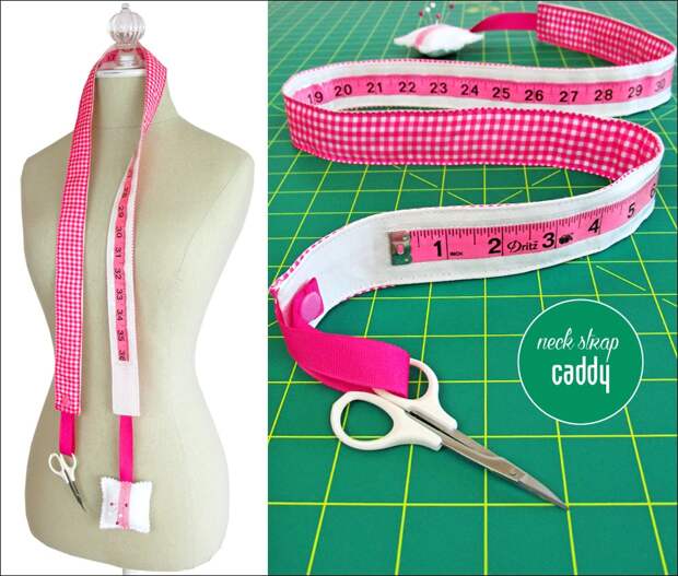 Еще один способ упростить процесс шитья – сделать себе аксессуар, в котором соединится сантиметровая лента, ножницы и подушечка для иголок. Так все нужное будет всегда под рукой.