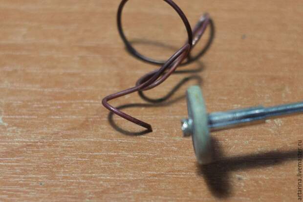 Теперь берем наш второй отрезок проволоки диаметра 0,8 мм. Заостряем край, шлифуем и сворачиваем его маленькой спиралью.
