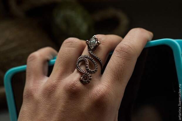 | В данном мастер-классе хочу поделиться с вами техникой создания безразмерного кольца-змеи из проволоки. Змейка получается довольно необычная, в реальности смотрится интересно, а сделать такую своими руками из проволоки вполне по силам каждому. |