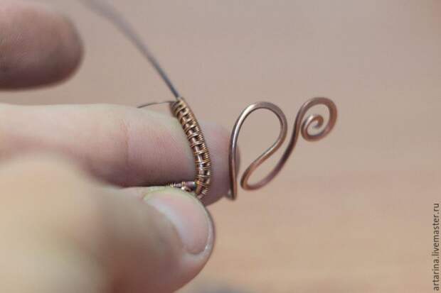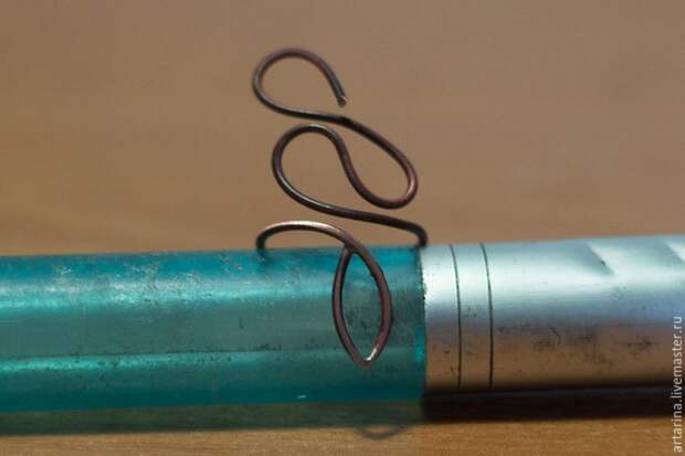 Затем берем циллиндрический предмет и оборачиваем проволоку, формируя шинку кольца.