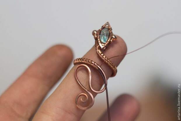 Заводим этот кружок под кончик верхнего элемента на голове и приматываем к основе.