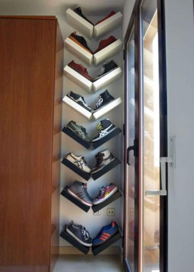 Из паллет можно соорудить удобную угловую полку для хранения обуви