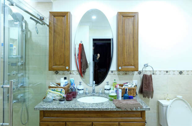 Переизбыток мебели превратит интерьер ванной в настоящую катастрофу. Старайтесь выбирать функциональную мебель и компактные системы хранения, которые занимают немного места, но при этом вмещают все необходимое.