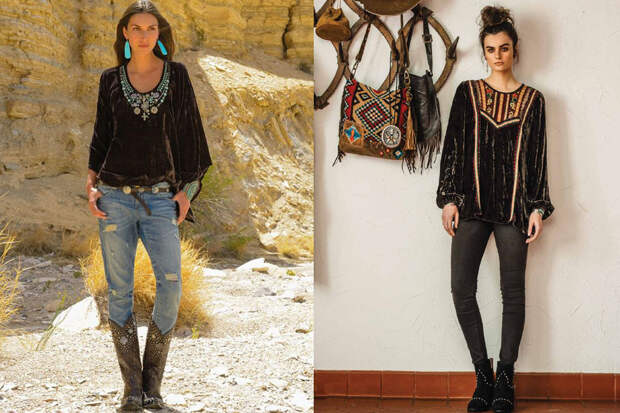 У этого бренда есть не только “бархотки”, но много просто вышитой или яркой одежды. Особенно мне понравились блузки и туники, которые могут даже с джинсами составить комплект, отдаленно приближающийся к бохо. Ведь это так просто, влез с утра в джинсы, а свободный вышитый топ сразу выдернет из будничности и погрузит в мир грез.